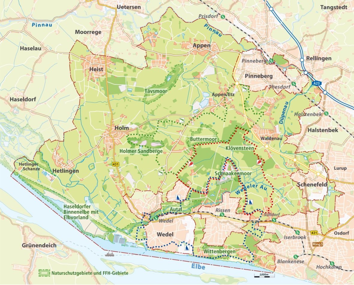 Erleben Sie die abwechslungsreiche Natur- und Kulturlandschaften direkt vor Ihrer Haustür! Im Westen Hamburgs haben sich die acht Gemeinden Schenefeld, Halstenbek, Pinneberg, Wedel, Appen, Heist, Hetlingen und Holm sowie der Bezirk Hamburg-Altona zum länderübergreifenden Regionalpark Wedeler Au e.V. zusammengeschlossen, der als gemeinnütziger Verein fungiert. Ziel des Vereins ist die Förderung von naturnaher Naherholung und Naturschutz. Namensgeberin ist die Wedeler Au, die den Regionalpark von Osten nach Westen durchfließt.